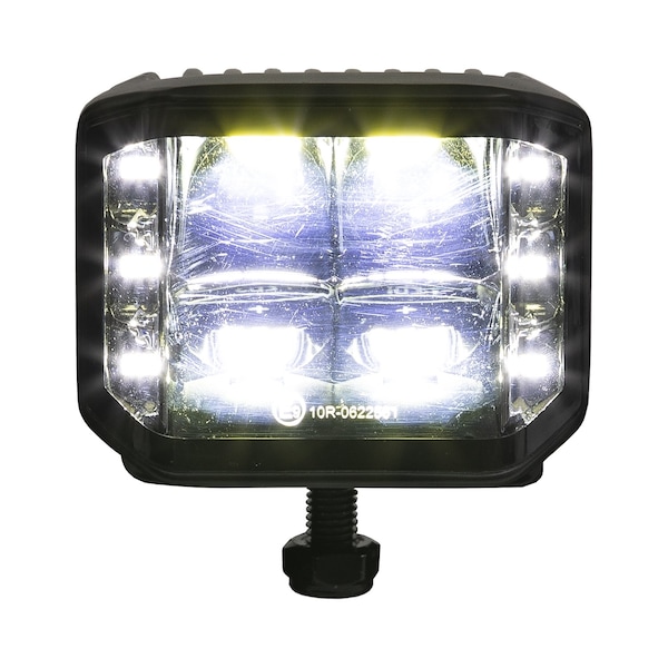 Buyers Products Wide Angle 4 Inch Rectangular LED Spot-Flood Combination Light delivers 3540 lumens of bright light in either a tight beam or across a wide area. It's ideal for a wide variety of applications with versatile spot and flood beam patterns and a 140° viewing angle.The durable light is rated IP67 / IP69K for extreme dust and water resistance. The polycarbonate lens shrugs off most impacts. Die-cast aluminum housing offers superior heat dissipation and features a corrosion resistant black powder-coated finish. This durable design makes the light perfect for both on-road and off-road applications. A stainless steel single-post mounting bracket and 18 in. leads with blunt cut ends make installation simple.