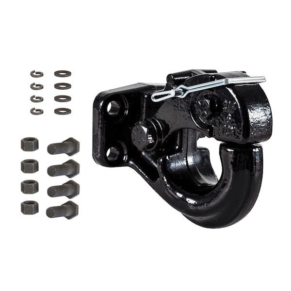 Pintle Hook, Mount Type Bolt On, Gross Trailer Weight Capacity 12,000 lb, Gross Vehicle Weight Capacity 12,000 lb, Tongue Weight 2,400 lb, Material Steel, Finish Powder Coated, Number of Mounting Holes 4, Horizontal Distance Between Mounting Holes 3 3/8 in, Vertical Distance Between Mounting Holes 1 3/4 in, Mounting Hole Diameter 17/32 in, Number of Balls Included 0, Includes Drilling Template, Mounting Kit, Specs Sheet, Vehicle Capacity Decal, Weight 12 lb