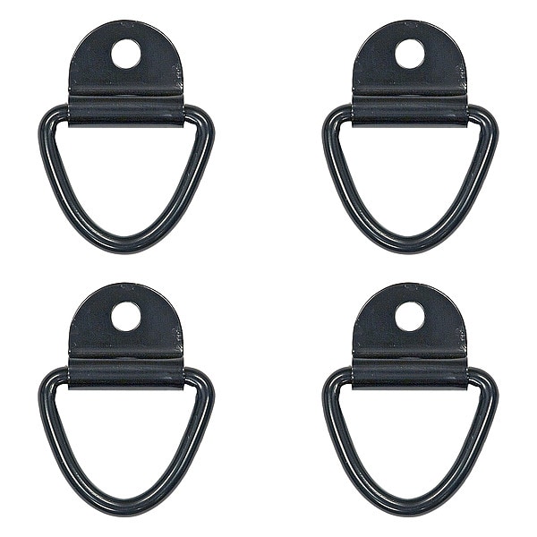 Rope Ring, Ring Dia. 1/4 in, Capacity GVW 6,000 lb, Working Load Limit 800 lb, Tongue Capacity 2,400 lb, Number of Holes 1, Material Steel, Finish Zinc Plated, For Use With Cargo Control, Features Corrosion-Resistant Black Zinc Plated Finish, Not Approved for Lifting, Includes Integral Mounting Bracket, Package Quantity 4