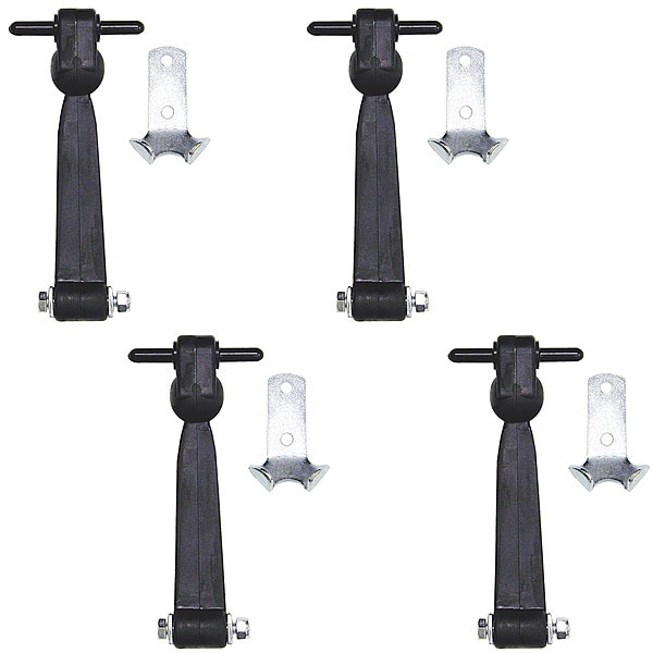 Rubber Hood Catch, Latch Type Catch, Latch Shape U-Shape, Handle Length 2 13/32 in, Latch Length 7 7/8 in, Latch Material Rubber, Latch Color Black, Bracket Finish Zinc Plated, Bracket Included Yes, Bracket Material Carbon Steel, Includes Brackets, Pin with Bumper, Latch Style T-Handle, Package Quantity 4