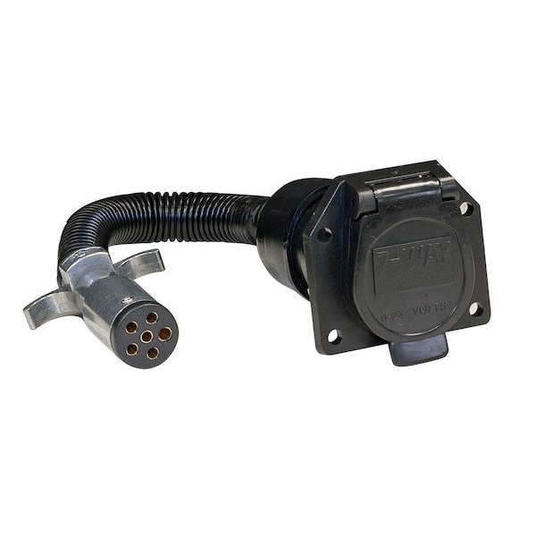 Trailer Adapter, Product Type 7-Way Flat Adapter, For Use With Boat Trailers, Fifth Wheel and Gooseneck Trailers, Large Utility Trailers, RVs, Trailer Connection 7-Way Blade, Vehicle Connection 6-Way Round, Material Plastic, Finish Die-Cast Zinc