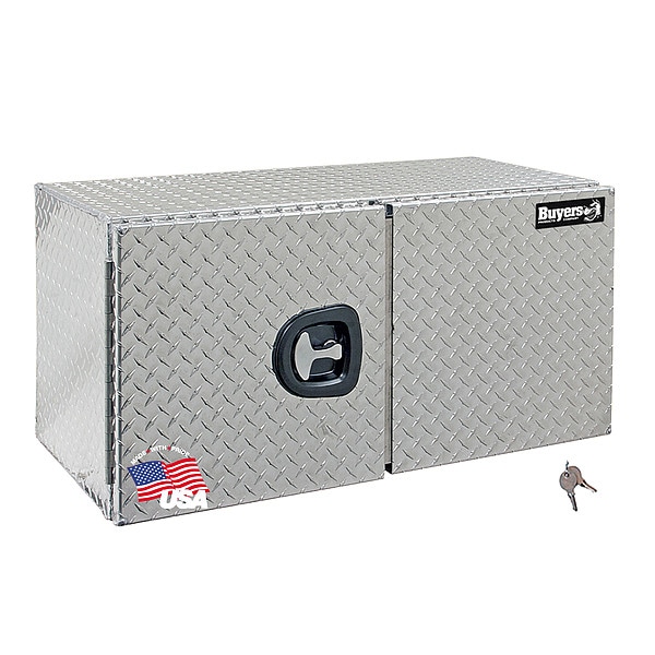 Underbody, Silver, Double Barn Doors, Overall Width 48 in, Overall Depth 18 in, Overall Height 18 in, Storage Capacity 9.7 cu ft, Body Material Aluminum, Lid Type Adjustable, Features Continuous Aluminum Hidden Hinge with Solid 1/4 in Pin, Swing-Out Doors and no Center Post, Built-in Rain Gutter with Bulb Seal