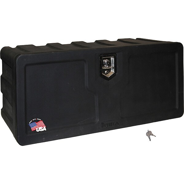Underbody, Black, Single Drop-Down Door, Overall Width 36 in, Overall Depth 18 in, Overall Height 18 in, Storage Capacity 7.3 cu ft, Body Material Polyethylene, Lid Type Non-Adjustable, Features Molded Double-Wall Lid Design, Aircraft-Grade Cables and an Automotive Bulb Door Seal, Drop Door with Solid Stainless Steel Hinge Pin