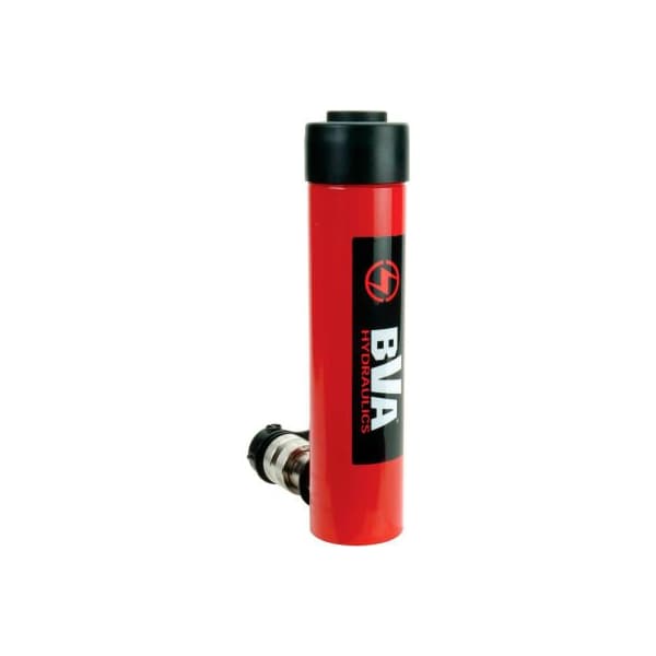 Bva hydraulics 10 ton single acting cylinder h1006, 6" stroke bva h1006 hydraulic cylinder with the 10 tons capacity and 6 inch stroke is ideal for lifting and pressing. Bva hydraulic h series cylinders are known in the industry as one of the best cylinders available. Bva cylinders feature a one piece high grade alloy bearing for side load protection, and cylinders are burnish rolled for a smooth precision finish to prolong seal life. All bva cylinders come with removable hardened saddles to protect plunger operation. Collar threads, plunger threads and base mounting holes enable easy fixturing. Bva h1006 hydraulic cylinder is a 10 ton 6 inch stroke single acting cylinder. It features heavy duty return springs, and the industrial hard chrome plated rod helps prevent rust and corrosion resistance. The ch38f coupler and dust cap are also included on all models. The maximum working pressure is 10,000 psi, (700 bar). compare to enerpac rc-106; compare to spx power team c106c.