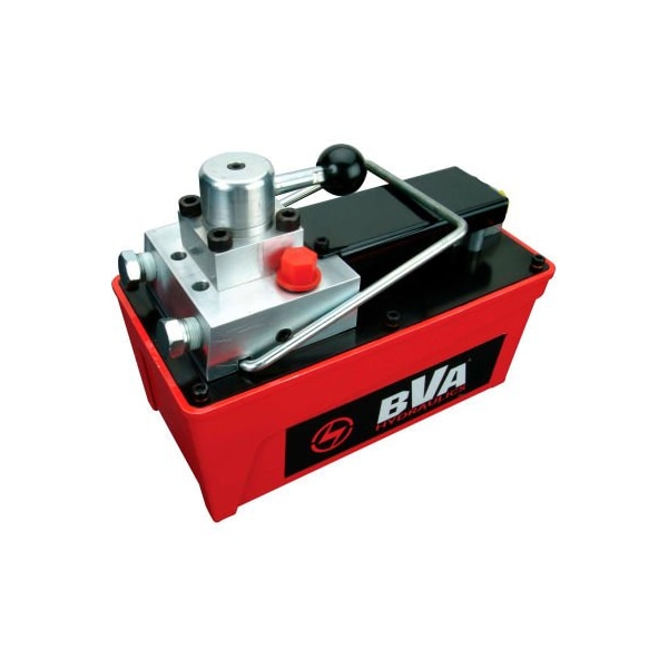 Bva hydraulics double acting treadle pump pa1500m, 10,000 psi air actuated hydraulic pump w/4-way control valve the bva pa1500m air pump with remote control is high strength reinforced aluminum alloy reservoir is lightweight and corrosion resistant. It features 91.5 in3 oil capacity with no load output 66 in3/min and load output 11 in3/min. It has a pressure relief valve for overload protection. The suggested air pressure range is 110 to 175 psi (7.6 to 12 bar). It is designed to be used with double acting cylinders. It features dust cover protection for the release control valve. The maximum working pressure is 10,000 psi, (700 bar). Comes in both hand lever control or hand held remote. Compare to enerpac pamg-1402n; compare to spx power team pa6dm. Compare to enerpac pamg-1402n; compare to spx power team pa6dm.