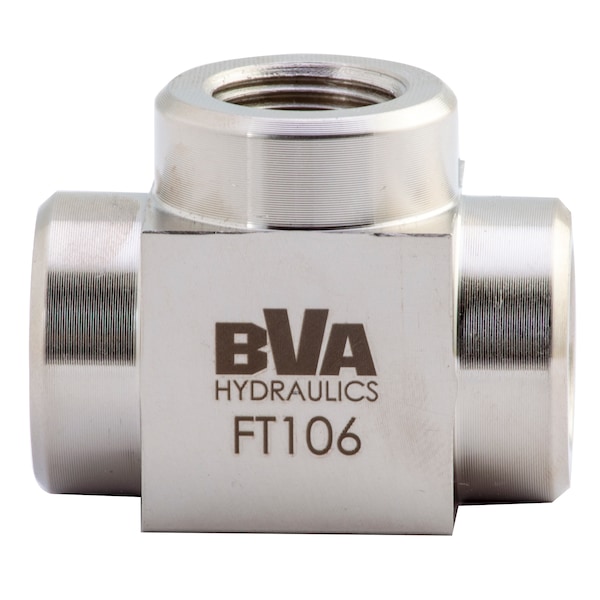 Hydraulic Hose Adapter, For Hose Type Hydraulic, Thread Size 3/8 In.-18, Fitting Shape Tee, Rigid, 10,000 psi, Includes O-Ring No, Crimpable No, Compatible Pipe Size 3/8 in, Hose Fitting A Gender Female, Hose Fitting B Gender Female, Hose Fitting A Size 3/8 in, Hose Fitting B Size 3/8 in, Hose Fitting A Connection Type NPTF, Hose Fitting B Connection Type NPTF, Overall Length 1.77 in, Fitting Material Steel, ANSI B40.1, ASME B30.1, SAE 100