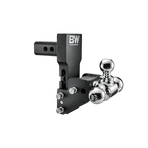 B&W Tow & Stow Tri Ball Adjustable Ball Mount - 1-1/2-4-1/2 Drop, 2-1/2-5-1/2 Rise - 2 Shank - 1-7/8, 2 and 2-5/16 Balls - Black Powder Coat Finish. Pull your boat to the lake, mower to the shop, or tractor to the job site?all with the same ball mount. The Tow & Stow?s adjustable height and multiple ball sizes mean it can fit most any trailer. Easily stow it under the vehicle when you?re done towing, so you never have to knock your shin or shut the garage door on a hitch again. Works with the GM Multi-Pro tailgate.