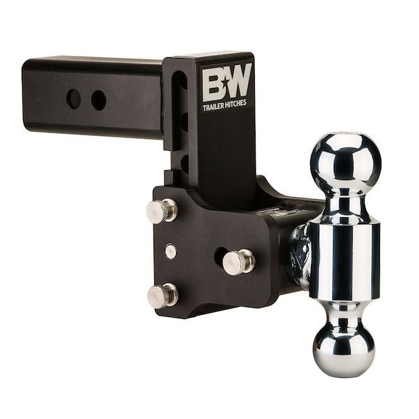 B&W Tow & Stow Dual Ball Adjustable Ball Mount, 5 Drop, 4-1/2 Rise, 2-1/2 Shank, 2 and 2-5/16 Balls - Black Powder Coat Finish. Pull your boat to the lake, mower to the shop, or tractor to the job site?all with the same ball mount. The Tow & Stow?s adjustable height and multiple ball sizes mean it can fit most any trailer. Easily stow it under the vehicle when you?re done towing, so you never have to knock your shin or shut the garage door on a hitch again.