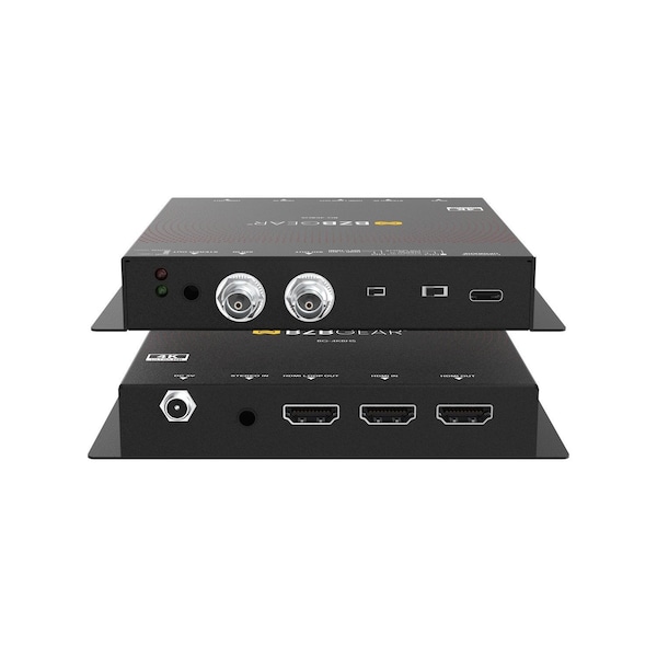 The BG-4KBHS is a professional-grade 12G/6G/3G/HD-SDI and HDMI 2.0 bi-directional converter featuring integrated audio embedding and extraction. Designed for uncompromising signal quality and reliability, this converter enables seamless real-time conversion between HDMI and SDI formats without latency or signal loss. Supporting full digital conversion, it maintains uncompressed, lossless video and audio for pristine broadcast performance. With support for up to 8 audio channels, including 7.1 and 5.1 surround sound, and a high-quality analog stereo embedder and extractor, the BG-4KBHS bridges professional SDI systems with consumer HDMI devices in a single, versatile solution. Its low-jitter SDI output, automatic signal detection, and broad video format support up to 4K@60Hz make it a reliable tool for broadcast studios, post-production, and AV integration environments demanding flexible and high-fidelity signal management. Features in Depth The BG-4KBHS delivers real-time, bi-directional conversion between HDMI 2.0 and 12G/6G/3G/HD-SDI formats with zero latency, ensuring broadcast-quality performance across professional and consumer workflows. It supports uncompressed 10-bit 4:2:2 video for exceptional image fidelity and automatically detects SDI signal formats for seamless switching between 12G, 6G, 3G, and HD-SDI. With support for a wide range of HD and UHD resolutions up to 4K@60Hz, the converter ensures full compatibility with modern production and display systems, maintaining lossless video and audio transmission throughout the process. In addition to high-quality video conversion, the BG-4KBHS integrates audio embedding and extraction, supporting up to 8 digital channels including 7.1 and 5.1 surround sound, along with 2-channel analog stereo I/O. This enables flexible routing of both embedded and external audio without additional hardware. Its low-jitter SDI output provides exceptional signal stability, while advanced re-clocking and equalization technologies allow cable runs up to 300m (HD-SDI) and 70m (12G-SDI) without degradation, making it ideal for broadcast, live production, and post-production environments that demand reliability and precision. Built on a 6-layer impedance-controlled PCB and enclosed in a durable metal chassis, the BG-4KBHS combines robust design with professional connectivity options, including HDMI Type-A, 75Ω BNC, and 3.5mm audio jacks.