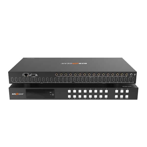 Introducing the BG-UHD-1616M, a cutting-edge 4K HDMI matrix switcher that delivers unparalleled control over multiple displays simultaneously. With support for up to 16 sources and 16 HDMI displays, this matrix offers an advanced solution for managing your video and audio needs.The BG-UHD-1616M supports HDMI 2.0b and HDCP 2.2/1.x, enabling you to enjoy resolutions as high as 4K2K@60Hz YUV 4:4:4 on all HDMI ports. The maximum video bandwidth of 18Gbps and the ability to downscale 4K video to 1080p ensure that your video quality remains crystal-clear on any display. You can rely on this matrix to deliver pristine uncompressed video transmission to all 16 displays.In addition, the BG-UHD-1616M supports HDMI audio pass-through up to 7.1 CH HD audio LPCM, Dolby TrueHD, and DTS-HD Master Audio. You can extract audio via corresponding digital coax ports for each HDMI output, giving you greater flexibility in sending audio to external devices in individual zones.With multiple control options, the BG-UHD-1616M provides a customizable experience for any use case. You can switch inputs using front panel buttons, an IR remote, RS-232, IP commands, or the web interface, or use free BZBGEAR's Switching Control Application on any device. The matrix also supports ARC, CEC, and smart EDID management, offering 21 factory-defined EDID settings, two user-defined EDID modes, and 16 copy EDID modes. This allows you to tailor the control experience to your specific needs.Overall, the BG-UHD-1616M is a powerful and versatile HDMI matrix switcher that delivers exceptional performance and control for your AV setups.