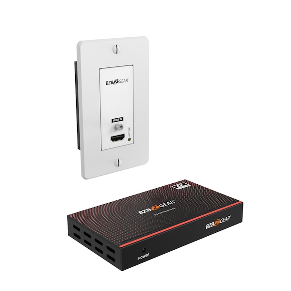 Introducing the BG-EXH-70WP-W HDBaseT Wall Plate Kit, featuring a sophisticated HDBaseT Wall-plate Transmitter and an HDBaseT to HDMI Receiver, designed to elevate your AV experience with seamless signal transmission and exceptional performance.The transmitter boasts HDMI 2.0b compliance and HDCP 2.2 compatibility, ensuring seamless connectivity and support for high-definition content. With support for resolutions up to 4K2K 60Hz 4:4:4, 4K2K 30Hz, and 1080p 120Hz, it delivers stunning visual clarity and fidelity, making it perfect for a wide range of applications.Transmitter Overview.The HDBaseT Wall-plate Transmitter in the BG-EXH-70WP-W kit represents the pinnacle of signal transmission technology, offering unparalleled performance and versatility. With HDMI input and HDBaseT output ports, it seamlessly integrates with your existing AV setup, extending video transmission distances of up to 230ft/70m for 1080p resolution and 130ft/40m for 4K resolution over a single CAT6/6a/7 cable.Additionally, it features Power over Cable PoC functionality, eliminating the need for separate power sources and enhancing installation flexibility. Moreover, with support for two-way IR and RS-232 communication, it provides comprehensive control options for seamless integration into your AV system.Receiver Overview.The HDBaseT to HDMI Receiver included in the BG-EXH-70WP-W kit complements the transmitter's capabilities, ensuring reliable signal reception and seamless integration into your AV setup. Featuring HDBaseT input and HDMI output ports, it effortlessly captures and delivers high-definition content to your display device.Equipped with indicators for link and data signal status, it provides real-time feedback on connection status for hassle-free operation. With support for DC 24V power input and comprehensive control options including IR and RS-232 ports, it offers versatile connectivity and control options for seamless integration into your AV system. Overall, the receiver delivers exceptional performance and reliability, making it an indispensable component of your AV setup.