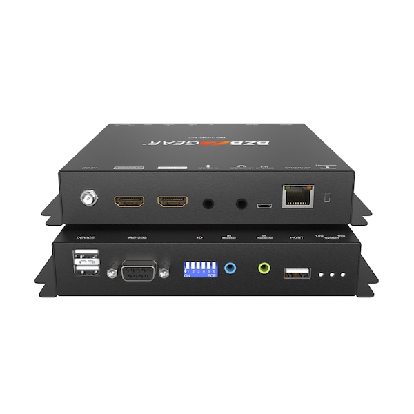 The BG-VOP-MT Transceiver performs both encoding and decoding for BZBGEARs IPGEAR-4K system. The device offers outstanding 4K UHD HDMI video transmission over IP and has support for PoE. This device is a keystone in providing digital signage, video walls, and video distribution in commercial settings. With the ability to function as a transmitter or receiver at the flip of the switch, this device is one of the easiest video over IP solutions to implement on the market. The BG-VOP-CB controller can auto-discover each BG-VOP-MT on the network, making for a painless setup process. Unlike most other video over IP solutions from competing manufacturers, the BG-VOP-MT is TAA compliant, making this device an attractive choice for government use. It also provides a scalable solution so that you can easily add additional BG-VOP-MT units to your network at any time. This enables operators to create fully customized HDMI matrix switching over IP. TAA COMPLIANT PRODUCT.This product meets the standards of the Trade Agreement Act TAA. In order to function, the BG-VOP-MT Transceiver requires the BG-VOP-CB Smart Controller. Please review our AVoIP Network Switch Requirements Guide to ensure that your system works correctly. This device makes it possible to extend UHD sources from any HDMI source to any location with a LAN connection. Audio embedding and de-embedding is also supported for external audio devices. This transceiver is HDCP 2.2 compliant and supports PoE, bi-directional IR extension, and RS-232 extension. A USB 2.0 hub allows for KVM extension, enabling operators to expand the range at which they can use peripherals to interact with machines. This makes it possible to store computers in a separate area from where their users interact with them, improving workspace productivity, security, and data protection. It also can greatly improve the quality of presentations where the podium may be far from the operating computer. The BG-VOP-MT is a complete UHD video broadcasting solution for digital signage. Point to Point, Point to Many, and Multicasting are supported broadcasting formats, meaning that one HDMI source can be broadcast to as many displays as necessary. This also enables operators to create custom video walls. All settings can be adjusted via an easy to use web interface, and control can be achieved via the web interface or using our free downloadable iOS control app - BG-AVOIP-CONTROL.