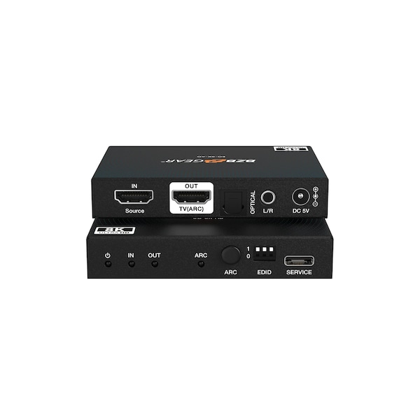 The BG-8K-AD 48Gbps HDMI Audio De-embedder is a powerful and versatile solution designed to extract high-fidelity audio from HDMI sources or ARC-compatible TVs while preserving a high-quality HDMI video feed. This device offers both analog stereo and digital S/PDIF outputs, making it ideal for advanced home theater systems and professional AV installations. Supporting the latest HDMI 2.1 and HDCP 2.3 standards, the de-embedder ensures exceptional video clarity and robust audio pass-through, providing an all-in-one solution for a seamless audiovisual experience.With 48Gbps FRL and 18Gbps TMDS video bandwidth, this de-embedder handles ultra-high-definition resolutions up to 8K 60Hz 4:2:0 12-bit and 4K 120Hz 4:4:4 12-bit, delivering sharp, vibrant visuals. It also supports key HDMI 2.1 features such as Variable Refresh Rate VRR, Auto Low Latency Mode ALLM, Quick Media Switching QMS, Quick Frame Transport QFT, and Source-Based Tone Mapping SBTM, ensuring smooth and responsive playback across various display technologies.The 48Gbps HDMI Audio De-embedder is engineered to extract pristine audio from HDMI sources or ARC-compatible televisions while maintaining a buffered HDMI video output, ensuring that visual quality remains uncompromised. Tailored for both high-end home theater systems and professional AV setups, this device supports the latest HDMI 2.1 and HDCP 2.3 standards, delivering top-notch video and audio performance.Equipped with a video bandwidth of 48Gbps FRL and 18Gbps TMDS, the de-embedder supports resolutions up to 8K 60Hz 4:2:0 12-bit and 4K 120Hz 4:4:4 12-bit, providing stunning image clarity and vibrant colors. The device also incorporates advanced HDMI 2.1 features, including Variable Refresh Rate VRR, Auto Low Latency Mode ALLM, Quick Media Switching QMS, Quick Frame Transport QFT, and Source-Based Tone Mapping SBTM. These features optimize visual performance, ensuring smooth, responsive, and visually immersive experiences across various display technologies.On the audio side, the de-embedder supports a wide range of high-definition formats, including LPCM 7.1CH, Dolby TrueHD, Dolby Atmos, DTS-HD Master Audio, and DTS, delivering immersive audio quality. It enables the extraction of audio from HDMI inputs or TV ARC channels, with output to both digital S/PDIF and L/R analog audio connections, offering flexibility in connecting to different audio systems.