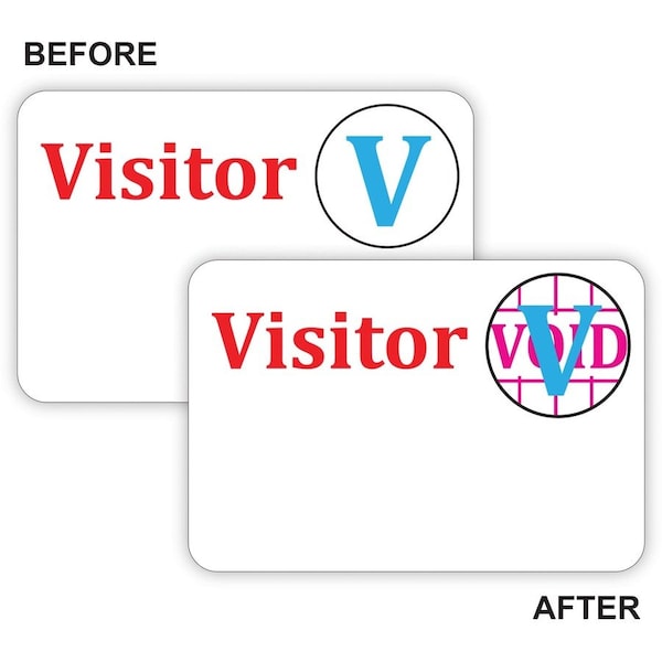 These easy-to-use, self-expiring badges are ideal for visitor control. Highly visible, color spot indicator signifies badge expiration. They help identify trespassers up to 50' away. Time's Up! One-Day Spot Badges reveal a bright red VOID notice after one day. To activate these self-adhesive badges, simply adhere the two parts together.