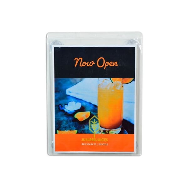 Heavyweight display pocket makes it easy to showcase information on a window by using the attached suction cups to affix the pocket. Perfect for displaying vehicle details at a dealership, alerting consumers of promotions prior to walking into a store and even storing work orders in rough industrial settings. Clear, heavyweight vinyl holders with non-rip seams attach to smooth, non-porous surfaces. Best results when this pocket is applied to glass, window or mirror type finishes. Top loading holder has four plastic suction cups attached to each corner. Ideal for convenient storage of instructions, vehicle information, ads and employee notices. Clear on both sides. 9 x 12.