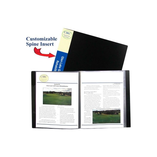 protect important documents, while creating a presentation book in minutes. Using the presentation book can help reduce time spent on creating a professional-looking hand-out. Instead, present your report, project or artwork in style with this presentation book. Features twelve bound-in clear top-loading polypropylene sheet protectors that lie flat while the book is open. Storage pocket on inside front cover holds extra materials. Clear-view spine insert is reversible for instant customization or visit the c-line products template gallery to create your own spine insert. Holds up to 24 pages. Acid-free, archival quality. Black. 12 per set.