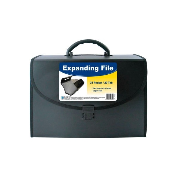 C-Line Products 21-Pocket Legal Size Expanding File with Handle, Black, 1/EA
