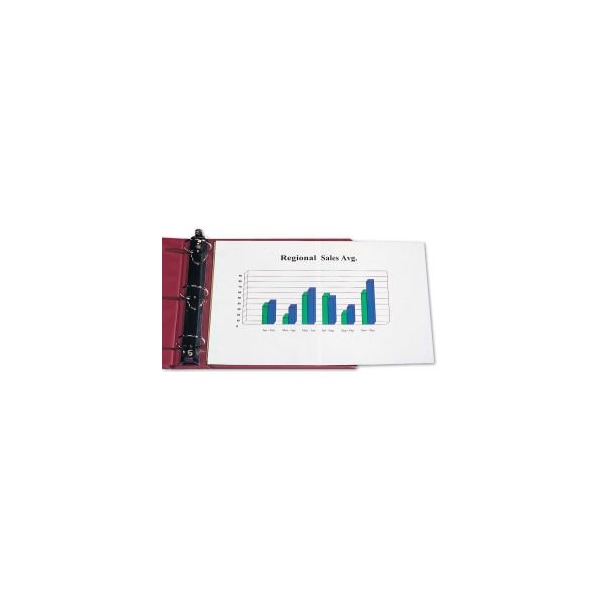 double wide fold-out page protector allows you to customize presentations over a spread 17 inches wide. Opens to display two 11 x 8 1/2 or one 11 x 17 sheet. Center loading design for easier loading. Heavyweight, archival quality polypropylene means no photocopy transfer. Clear finish. 25/bx.