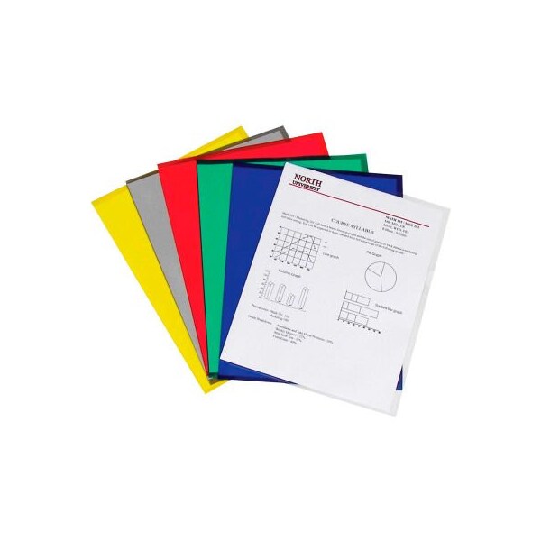 strong, tear-resistant polypropylene folders divide, organize and color code your many projects. Use by themselves or to subdivide file folders. Sealed on two sides, each folder is made for easy loading and access. Polypropylene means no photocopy transfer - safe protection for your hard work. For 11 x 8 1/2 materials. Contains 5 each smoke, green, red, blue and yellow. Each box includes 25 project folders.