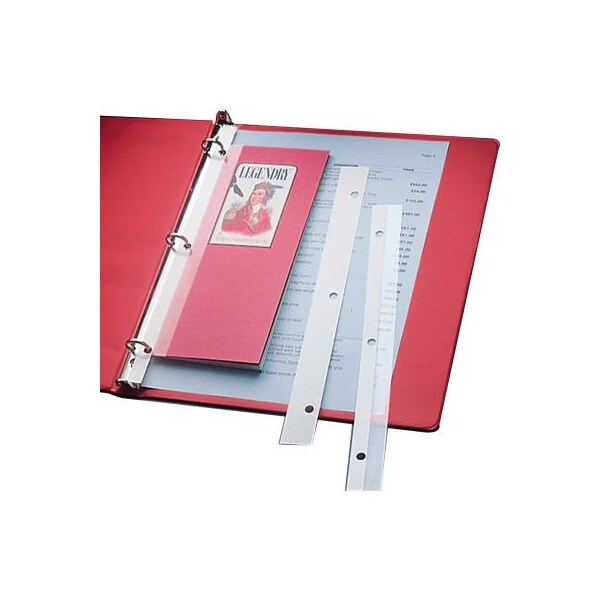these pre-punched adhesive strips allow easy addition of odd-sized materials to any standard three-ring binder. Simply trim the excess adhesive material and insert into binder. Size: 11 x 1. 200/bx.