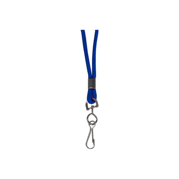 this classic style features nylon material, which proves to be comfortable when worn around the neck. The metal hook securely attaches the id badge to the lanyard, allowing the badge to be displayed. Durable lanyards allow for the prominent display of badges and id cards without damaging clothing. Round woven, nylon material with swivel hook attachment. 36 in. Long. Blue.