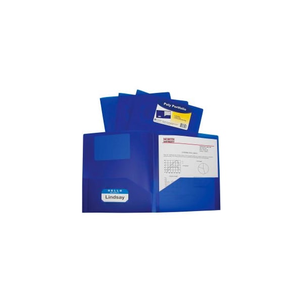 two-pocket heavyweight polypropylene portfolios / folders hold papers and resist tearing. Features business card slot. Without prongs. For 11 x 8-1/2 document storage. Blue.