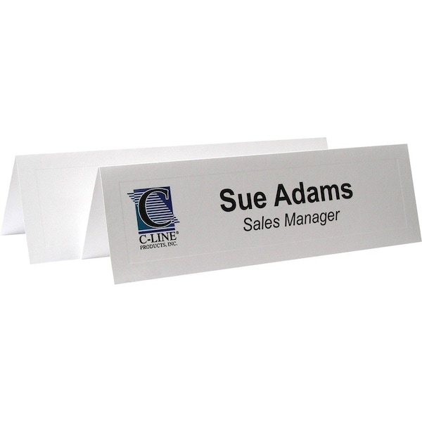 Create name tents and signs with your inkjet or laser printer. Name tent sits on desk, table or any flat surface. Ideal for offices, conferences, meetings and more. Simply insert your printed cardstock into a reusable heavyweight plastic tent holder (sold separately) to display a name or sign prominently. Three sizes of displays are available. Cardstock is scored for easy folding and available to accommodate all three sizes. Inserts are on letter-size paper for easy printing.