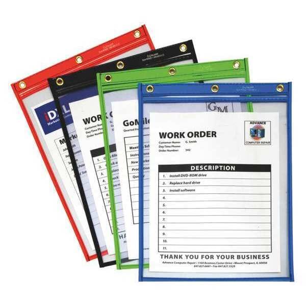 Shop Ticket Holder, Mounting Type 1/4 in Grommet, Opening Top, Material Vinyl, Seam Style Stitched, Color Clear, Width 9 in, Height 12 in, Package Quantity 20