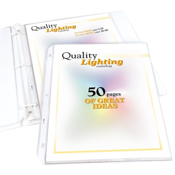 Love to keep organized Reclaim your work area by clearing catalogs, magazines, software manuals and more off of your desktop and into threering binders Store up to 50 sheets in these larger capacity top loading sheet protectors Provides all the benefits of heavyweight polypropylene No sheet punching necessary Clear finish 25BX