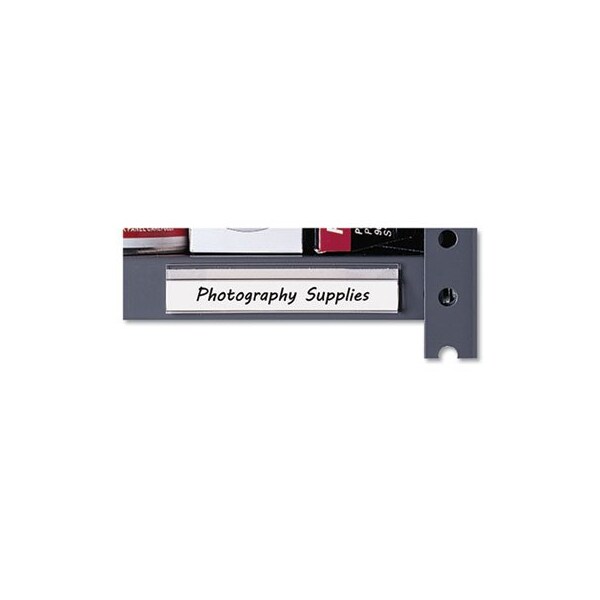 Identify and label files, shelves, bins and more. Permanently adhere to most flat, clean, dry surfaces. Self-adhesive, clear plastic. Easy-to-change inserts included. Colors: Clear; Size: 4 x 0.78; Load Style: Side; Materials: Plastic.
