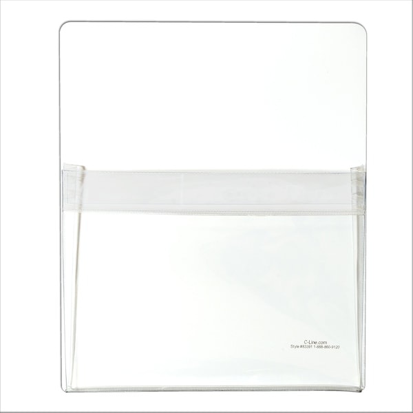 Provide maximum protection for documents stored in rough, industrial environments, this Document Storage Pouch with Magnetic Backing is perfect for office and industrial use Place these vinyl shop ticket holders on any metal surface and keep equipment manuals or other large documents at your fingertips Magnetic backing allows the storage pouch to attach to machinery, file cabinets, racks and more The vinyl pocket features a thick piece of rigid vinyl at the top to ensure the pouch can withstand the weight of large documents Size 812 x 11 Clear vinyl pocket with white backing on the front and magnetic backing on the back This item includes 15 each of CLI83391 1 Magnetic Document Pouch