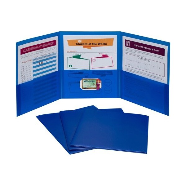 Portfolio, 3-Pocket, w/Card Holder, Poly, Letter, Blue, 24PK