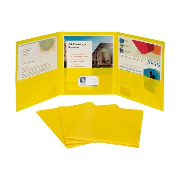 Portfolio, 3-Pocket, w/Card Holder, Poly, Letter, Yellow, 24PK
