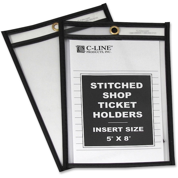 Store and protect work orders, production schedules, inventory cards and more in these stitched, shop ticket holders. Strong, rigid, clear vinyl allows easy visibility of documents. Convenient eyelet at top allows hanging. Reinforced stitched edge delivers longer product life. Both sides are clear. Holders open on short side.