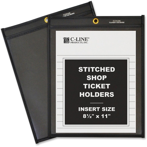 Shop Ticket Holder, Stitched, 8-1/2"x11", 25/BX, Clear/Black 25PK