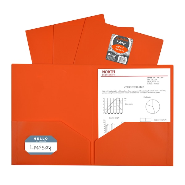 Twopocket heavyweight polypropylene portfolios folders hold papers and resist tearing Features business card slot Without prongs For 11 x 8 12 document storage Orange This item includes 25 each of item CLI33952 1 Poly Port