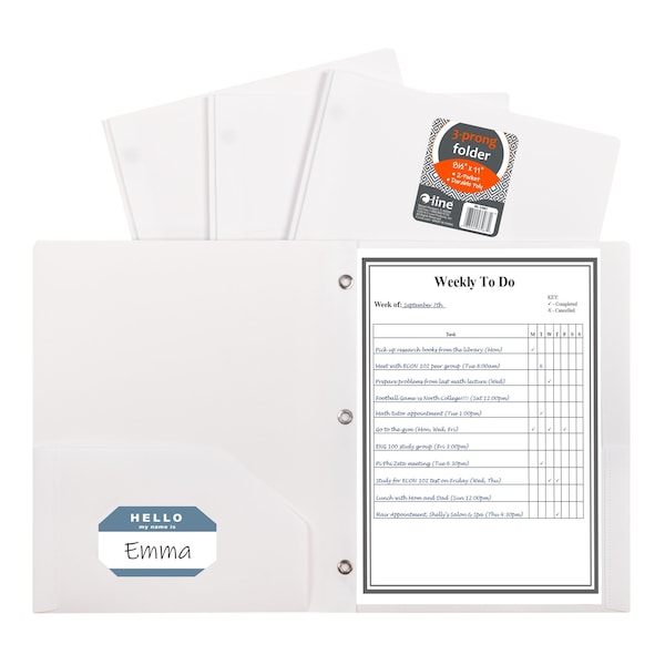 Twopocket heavyweight polypropylene portfolios folders hold papers and resist tearing Features business card slot With prongs For 11 x 8 12 document storage White This item includes 25 each of CLI33967 1 Poly Port