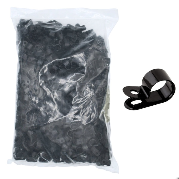The 0.5" Black Cable Clamp provides a secure and organized way to route wires and cables. These nylon cable clamps are designed to hold wire bundles, tubes, or hoses in place, preventing movement and chafing while maintaining a neat appearance. This product features a bundle diameter capacity of 1/2 in. The width is 0.5 in. Made from Nylon 6/19, this black clamp is UV Resistant and suitable for outdoor use. It uses a Screw mounting method with a 0.203 in mounting hole diameter. It operates in temperatures from -40 Degrees F to 185 Degrees F. This product is sold in a pack of 1000.