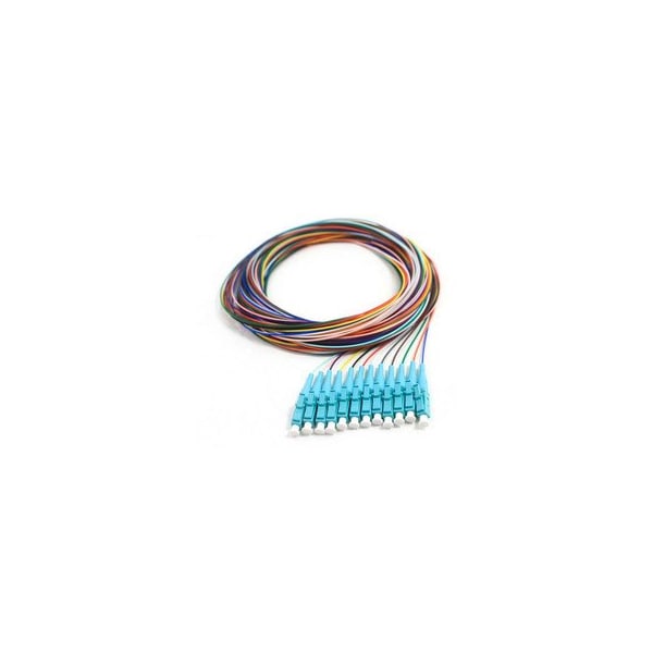 12 Strand Fiber Pigtail, 50/125 Multmode(Aqua Boot), OM3, LC/PC connectors, 3 meter