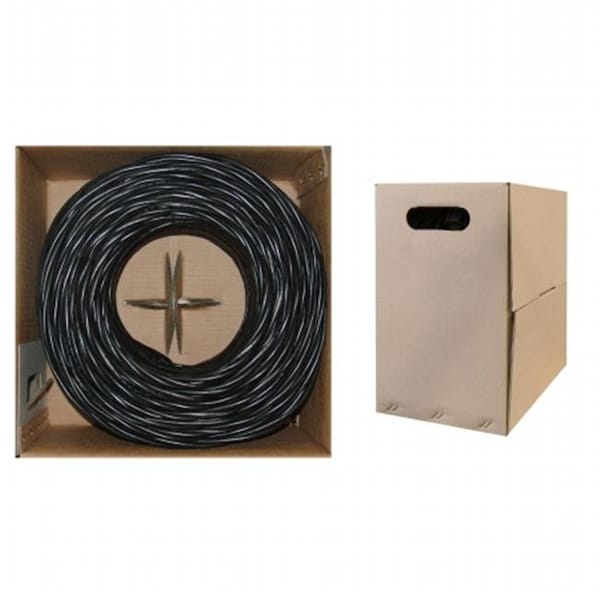 Plenum Cat6 Bulk Cable, Black, Solid, UTP (Unshielded Twisted Pair), CMP, 23 AWG, Pullbox, 1000 foot
