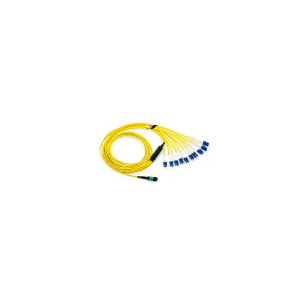 Plenum Fiber Optic Cable, 100 Gigabit Ethernet CFP/CXP 100GBase-SR10 to MTP(MPO)/LC (10 Duplex LC) 24 inch Breakout Cable, OS2 9/125 Singlemode, 10 meter