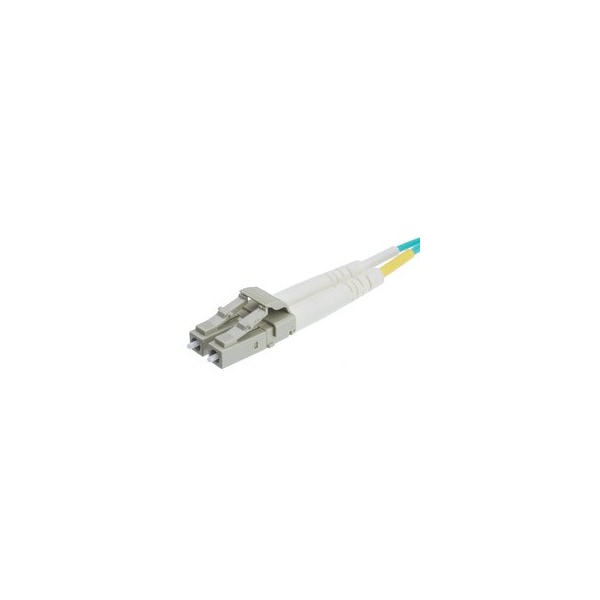 Plenum LC OM3 Duplex Fiber Optic Patch Cord, OFNP, Multimode 50/125, Aqua Jacket, Beige