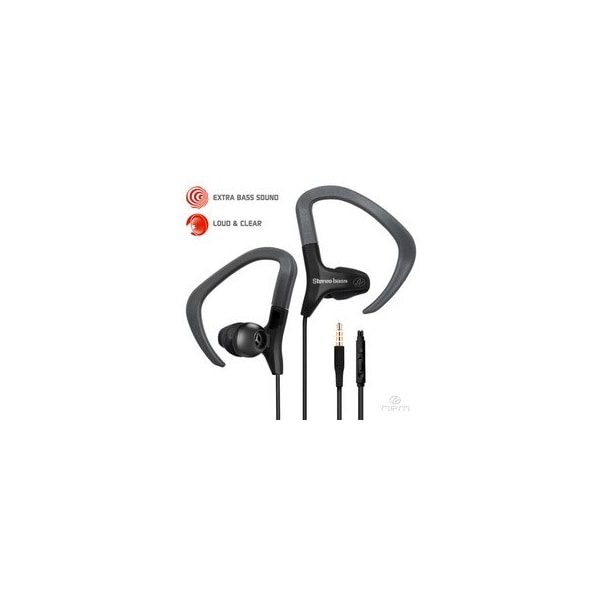 Sport Over-Ear Clip Earbuds featuring microphone with play/pause/call controls and slide