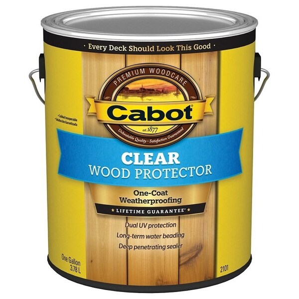 Cabot clear wood protector is a deep penetrating waterproofer, combined with dual-action UV protection and a mold, mildew and algae-resistant coating. The true clear finish and soap and water clean-up makes it easy to apply. Unlike wax-based clears that sit on top of the surface and wear away, clear wood protector penetrates deeply into wood fibers to long-lasting protection.