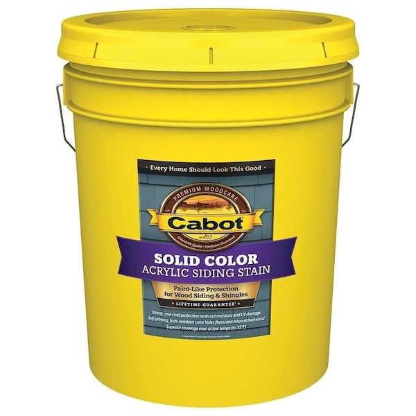 Cabot solid color acrylic siding stain is an advanced technology, 100 acrylic solid color stain formulated to have great performance properties for the professional user Solid color acrylic siding stain is a heavily pigmented and exceptionally thick wood siding stain, delivering greater opacity than conventional solid color stains The result is smoother spread, better coverage and superb handling when applied by either brush or sprayer In addition, this product has been developed and tested for use in colder temperatures, extending the exterior maintenance season for professionals in cooler climates Cabot solid color acrylic siding stain covers previously painted or stained surfaces in just onecoat, improving project completion time and maximizing labor efficiencies Cabot solid color acrylic siding stain is so advanced, it does not require the use of a primer coat on nonextractiveprone wood species such as pine, white cedar or cypress