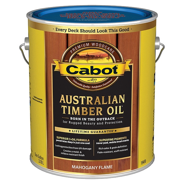 Exterior Stain, For Use On Surface Material Wood, Paint Base Type Oil, Paint Color Family Clears, Mahogany Flame, Toned Flat Finish, Size 1 gal, Coverage 250 to 350 sq ft, VOC Content Less Than 275g/L, Dry Time Recoat 24 hr, Application Method Brush, Conventional Spray, Exposure Conditions Exterior, Dry Time 24 hr, Wood Stain