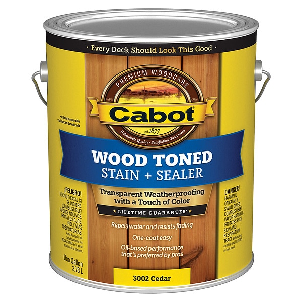 Translucent Stain, For Use On Surface Material Wood, Paint Base Type Oil, Paint Color Family Browns, Cedar, Flat Finish, Size 1 gal, Coverage 150 to 250 sq ft Rough Surface, 400 to 600 sq ft Smooth Surface, VOC Content Less Than 550g/L, Dry Time Recoat 24 hr, Application Method Brush, Conventional Spray, Exposure Conditions Exterior, Dry Time 24 hr, Wood Stain