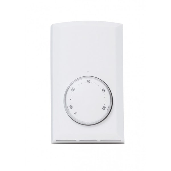 This Cadet Single-Pole, Wall-Mount non-programmable Thermostat is designed for use with 120/208/240-volt baseboard and fan-forced heaters to control your room temperature. It offers a temperature range of 40 degrees F - 80 degrees F and is a line voltage