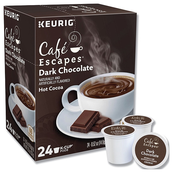 Hot Cocoa, Net Weight 12.48 oz, Beverage Package Style Pod, Coffee Roast/Tea Type Not Applicable, Package Weight 0.52 oz, Sub-Brand Cafe Escapes(R), Beverage Flavor Dark Chocolate, Product Type Hot Cocoa, Caffeine Type Non-Caffeinated, Beverage Format Ground, Package Quantity 24