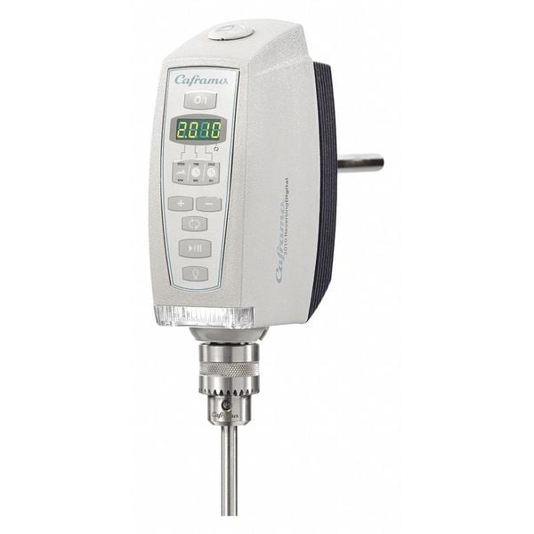 Overhead Mixer, Volume 25 L, Max. Viscosity 20,000 cps, Maximum Torque 90 N-cm, HP 0.1, Operating Speed 40 to 2010 rpm, Mixing Speed Type Variable, Voltage 100/240V, Reversible Yes, Plug Style - Lab Equipment Standard, Through Shaft Yes, Overall Height 9 3/4 in, Overall Length 11 in, Overall Width 3 in, Amps 2.5/3.8, Shaft Dia. 10 mm